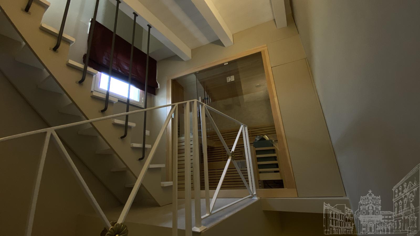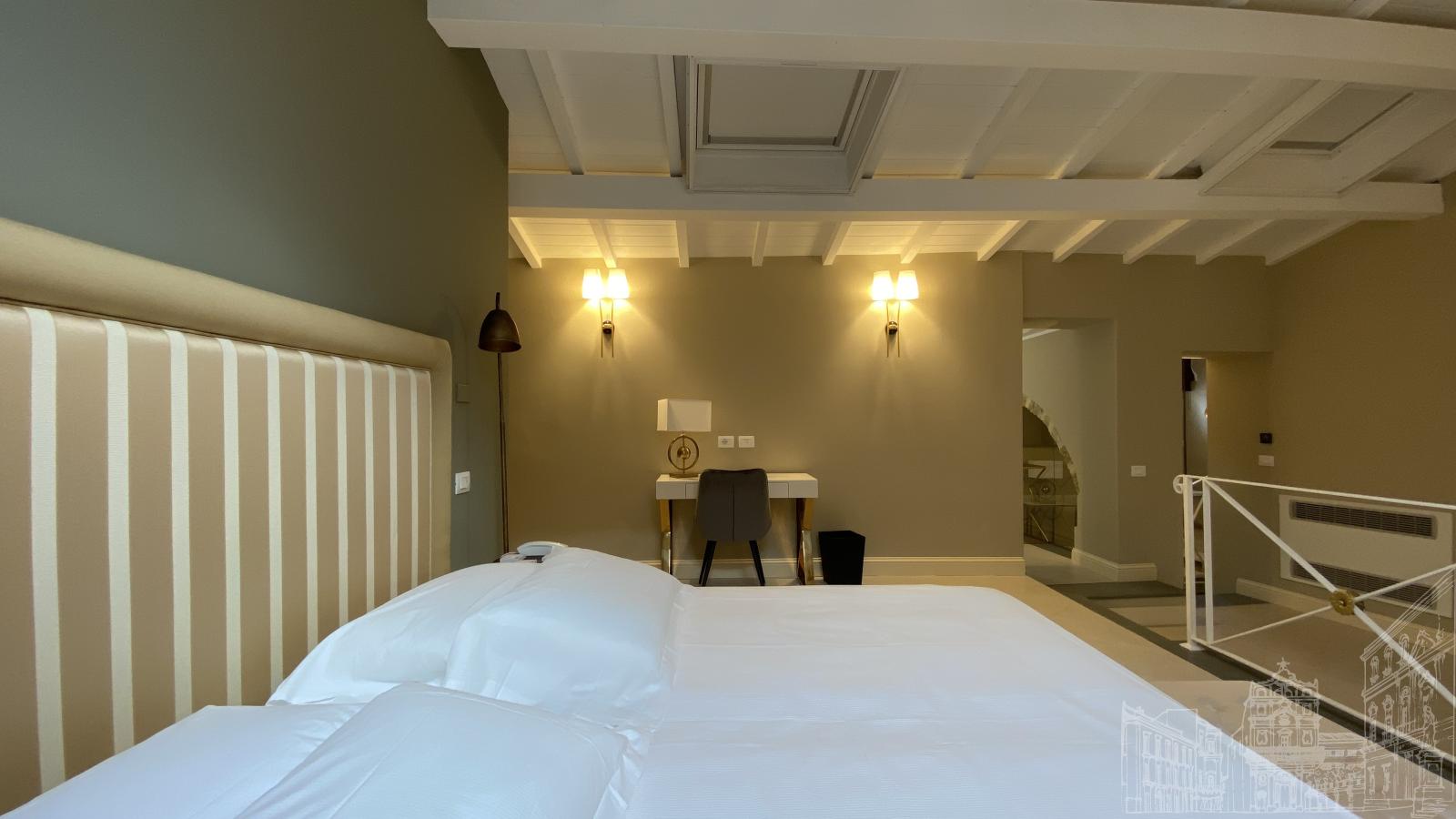 Large and welcoming Deluxe Suiteof 75 m2. Equipped with an XXL shower, King size bed and private sauna, it is ready to welcome its guests on a relaxing autumn evening or for an effervescent aperitif at sunset on warm summer evenings, thanks to the two exclusive private terraces overlooking the sea.